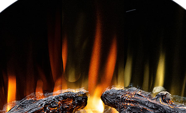 The Spark fireplace comes with translucent logs that give the impression of glowing wood.